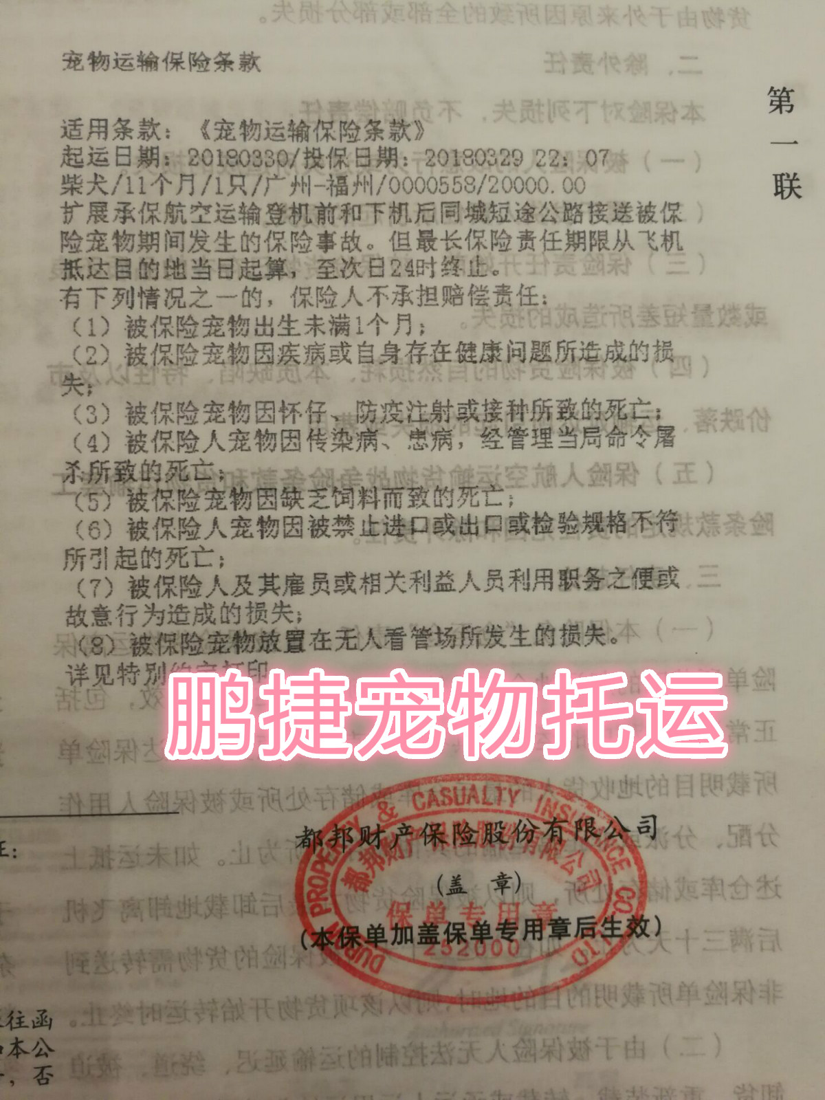 乘客乘机可以购买航空意外险,宠物空运是否也可以购买呢?答案是肯定的,目前,都邦财产股份有限公司推出宠物死亡险,我公司和都邦财险建立合作关系,各位宠宝家长空运直接联系我司客服(微信:pengjiepet2)办理购买保险事宜!由我司统一先保险公司办理投保及后续所以操作!